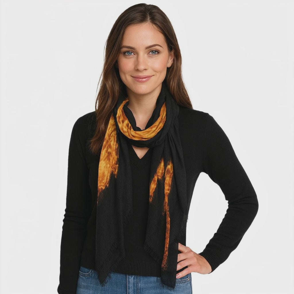 The Barcelona Silk/Micromodal Scarf glows with the brilliance of Gaudí’s masterpiece. Featuring the illuminated Sagrada Família at night, it’s bold, architectural, and unforgettable.