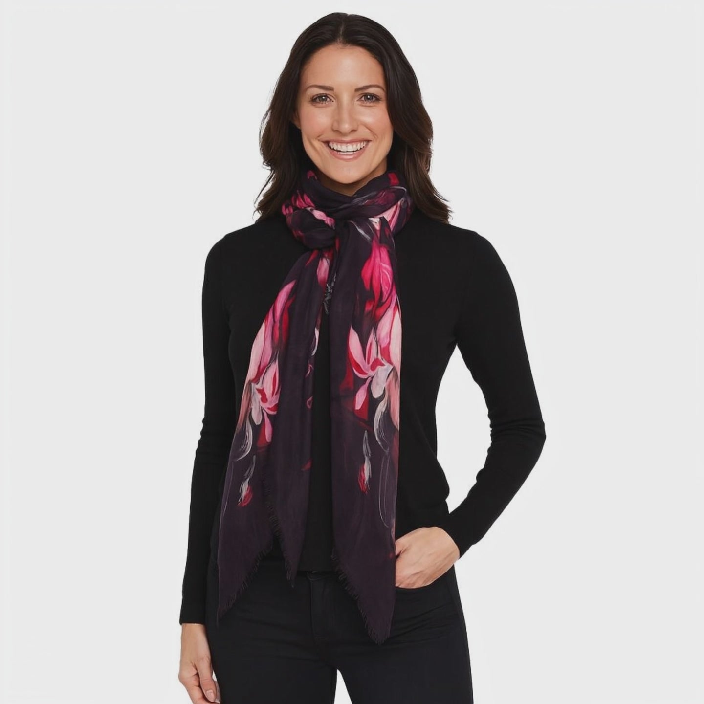 Wrap yourself in effortless elegance with our Micromodal Calla Lily Crimson Scarf. Designed with a striking blend of crimson, pink, and charcoal tones, this ultra-soft scarf drapes beautifully and adds a touch of modern artistry to any outfit. Lightweight yet cozy, it’s the perfect accessory to elevate both day-to-day looks and evening style.