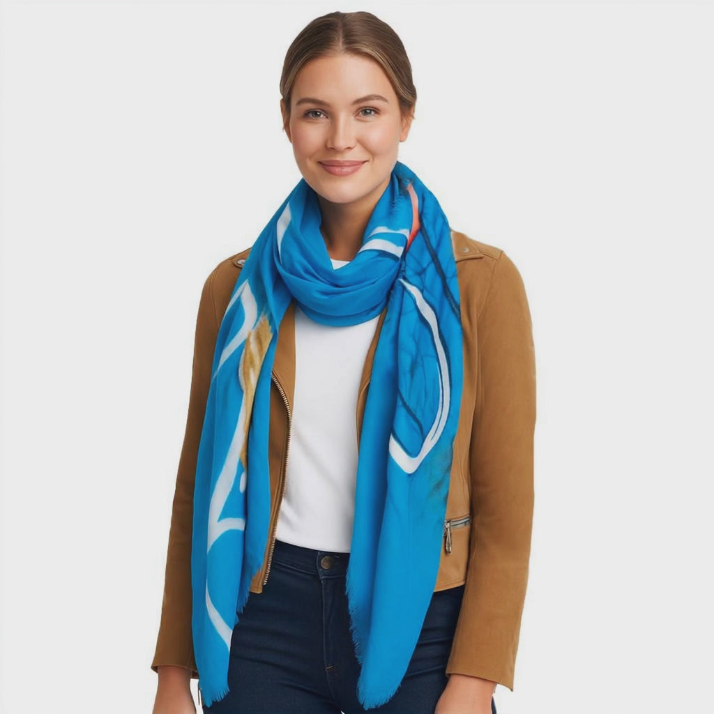 A striking printed scarf that draws the eye and invites conversation—an instant focal point on the floor.