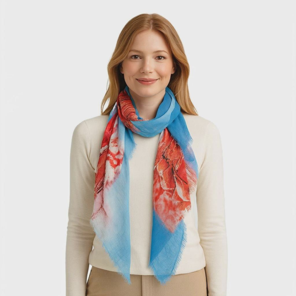 A striking printed scarf that draws the eye and invites conversation—an instant focal point on the floor.
