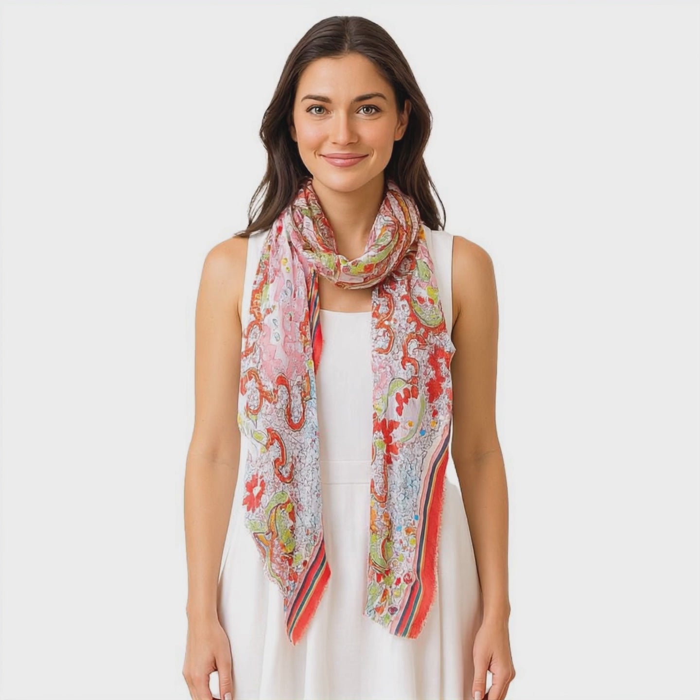 Step into a world of artistry with The Isles of Greece Scarf Collection, now featuring a vibrant new addition. This micromodal scarf captures the spirit of the Mediterranean through a symphony of intricate patterns and luminous color. Inspired by Greek mosaic artistry and coastal landscapes, it blends timeless tradition with contemporary style, making it a standout piece in any wardrobe.