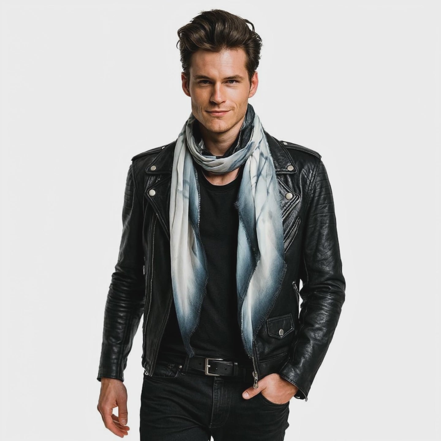 Inspired by the balance of art and edge, the Vitruvian Rock Scarf brings structure and softness together in micromodal perfection. A lightweight essential with a distinctly masculine presence.