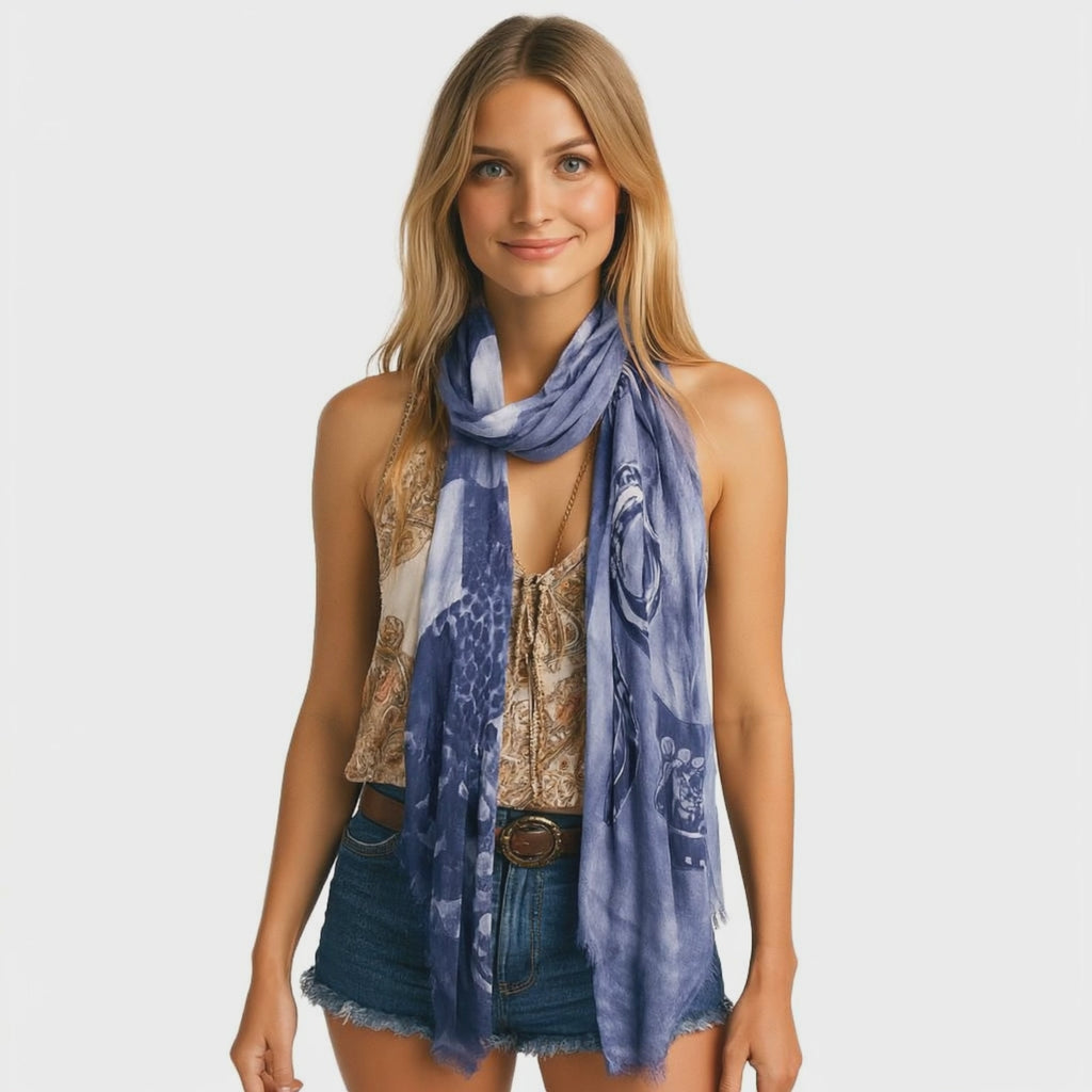 Blue Pacific Woodstock scarf—celebrating 3 days of peace & music. Ultra-soft, lightweight & iconic for free spirits and festival lovers.